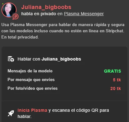 Hi!!! My name is Juliana, I'm Colombian, I'm 32 years old, I'm the girl with the boobs, although I'm more than just boobs, if you don't see something on my menu ask me, if you're respectful I'll answer you in the same way, you'll be able to see much more of me !